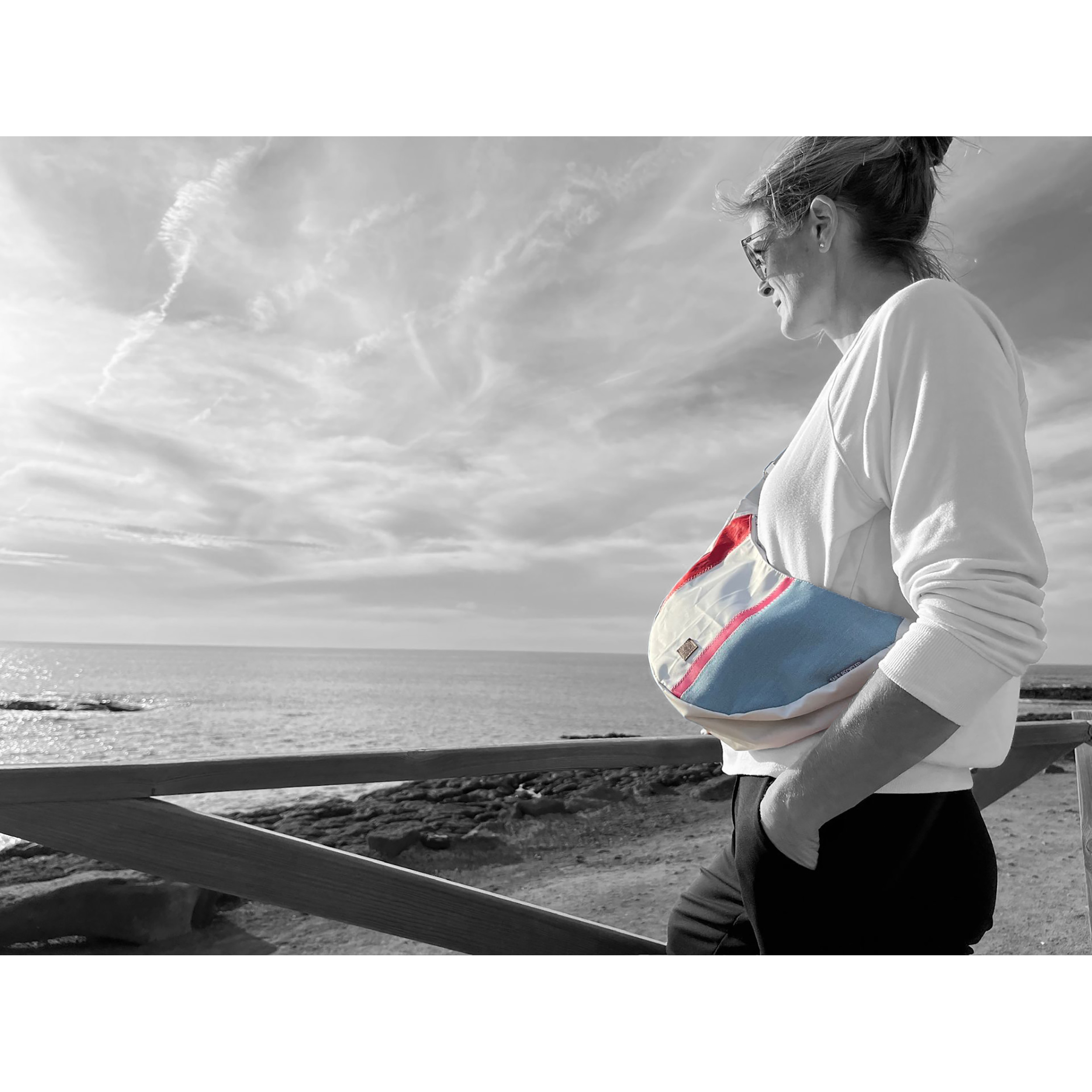 Its unique design makes the Moonbag Roop L a must-have accessory for all fashion-conscious people who appreciate individuality. Discover the fusion of innovation, style and sustainability and experience the magic of the moon in your everyday life made from used Dacron sails and old retro surf sails. A shoulder bag that makes a clear statement for design and sustainability.