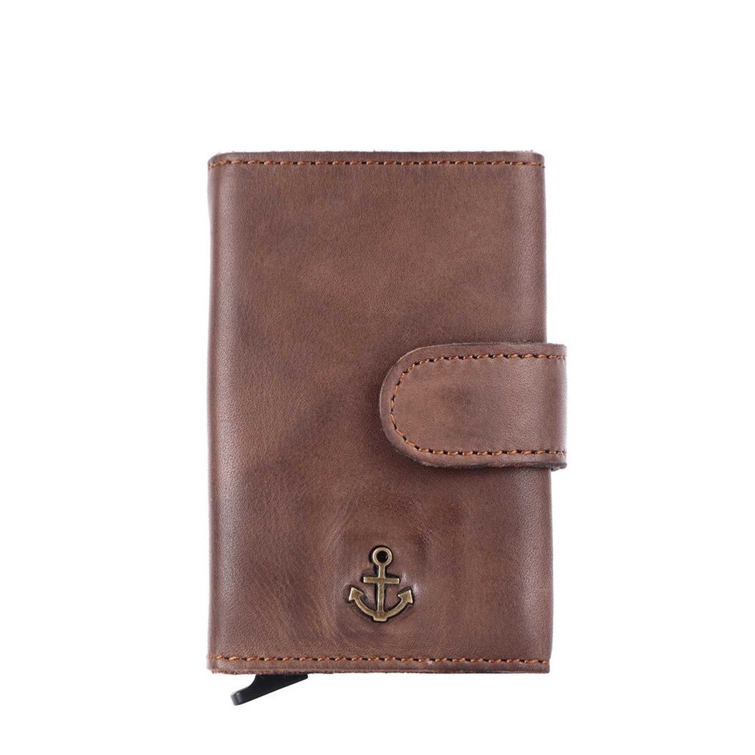 The darling Robin from the Anchor Love collection by Harbour 2nd has a lot to offer. The card case is encased in wonderfully soft cowhide leather. The aluminium case protects all cards from being read and therefore from data theft (RFID protected). Depending on the embossing, there is space for up to seven cards in the case, which can be fanned out by pressing the lever. The leather cover has space for more cards as well as notes or receipts. Coins can be stored in the zip compartment on the back.